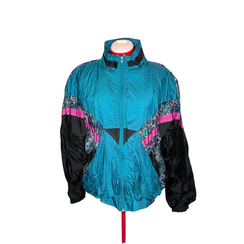 Blue/Multi/Abstract Printed Vintage Track Jacket (L)